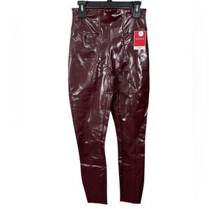 NWT Spanx Faux Patent Leather Shiny Leggings Ruby Burgundy Size XS PETITE