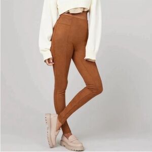 NWT Spanx Faux Suede Pull On High Waisted Leggings Rich Caramel