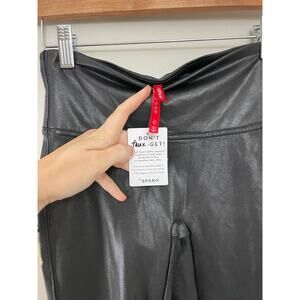 NWT Spanx High Rise Faux Vegan Leather High Compression Leggings Black Small. Faux Leather that flatters. This best-selling style features sleek, smoothing faux leather fabric that shapes and lifts and our contoured Power Waistband for core compression. WLF 12 inches, Rise 9, Inseam 27 inches. MSRP $98. Excellent NEW condition, no flaws noted. Please don't hesitate to ask any further questions. Smoke free pet friendly home. Check out my other listings for a bundle deal!