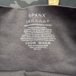 Experience the perfect blend of style and comfort with these SPANX leggings, featuring a modern black and gray camouflage pattern. Designed with a slim fit and crafted from a stretchy material, these leggings offer a flattering silhouette and full-length coverage. Ideal for both casual outings and athletic activities, they are a versatile addition to any wardrobe.