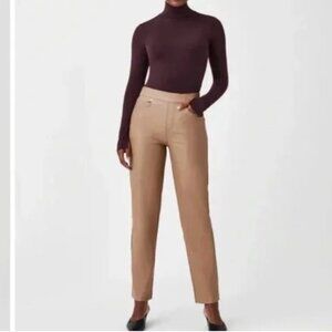 NWT Spanx Regular Pants Leather Like Slim Straight in toffee faux leather