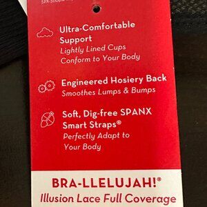 NWT Spanx Sz 40D Brallelujah Allure lace full coverage black bra. Front closure. Underwire.