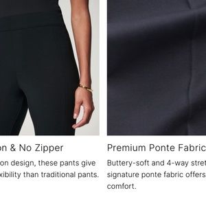 Easy CareMachine washable. No Button & No Zipper With a pull on design, these pants give more fit flexibility than traditional pants. Premium Ponte Fabric Buttery-soft and 4-way stretch, our signature ponte fabric offers luxurious comfort. Flattering Fit Featuring hidden core shaping technology and a body skimming fit with a straight leg, this style is flattering dressed up or down.