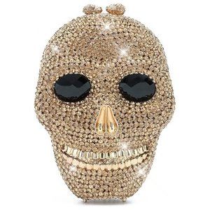 NEW Sparkling Bling Swarovski Crystal Rhinestone Skull Clutch Purse + FREE Bling Gift We Always Include A Free Thank You Gift 🥰 This Beautiful Clutch Is Great For Any Occasion! Wedding, Prom, Quincenera, Sweet 16 Makes A Perfect Birthday Gift & Great Conversation Piece Measures: 7.5" x 5.1" x 3.5" 4 Colors Available Silver & Gold, Silver, Black or Multi Color Includes Detachable Chain Strap Please See Our Website For More Available Colors Outside Material: Crystal Rhinestones Inside Material: Faux Leather Pictures Don't Even Come Close To How Much They Sparkle Please See Video For More Details Condition: This Item Is Brand New, Never Used Inside A Gift Box With Bubble Wrap Disclaimer: Product Color May Slightly Vary Due to Photographic Lighting Computer Monitors