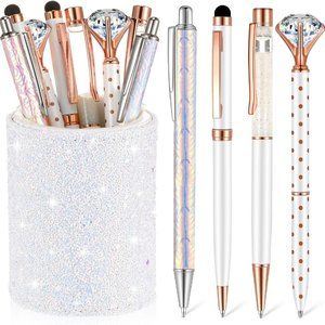 NWT Sparkling Bling Glitter Cup With 8 Ballpoint Pen Set Desk Set + FREE…