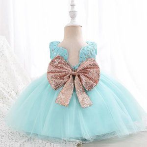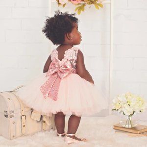 NWT Sparkling Bling Sequin Bow Pink Baby Dress Wedding Flower Girl Birth…