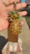 Dazzling pineapple keychain with gold and green crystals. Perfect accessory for bags or keys.