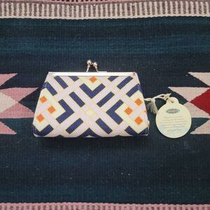 NWT Spartina 449 Harbor Light Island Clasp Coin Purse Wallet Leather Linen