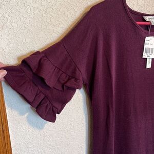 NWT- Speechless- Plum Purple Mini Sweater Dress w/ Ruffle Sleeves, Size S