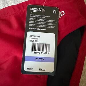 NWT Speedo Boys Solid Powerflex Youth Brief Red Size 26 10/12