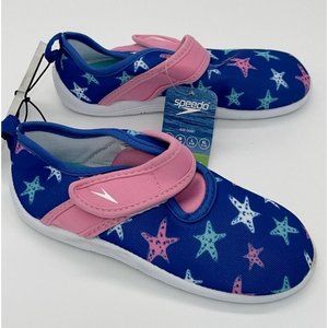 NWT Speedo Girls Kids XL 11/12 Shore Explore Water Shoes Blue Pink White Stars