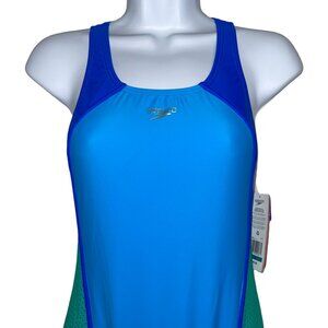 NWT Speedo No Wedgie Worries One Piece Swimsuit Youth 16 Girls Lined Patchwork