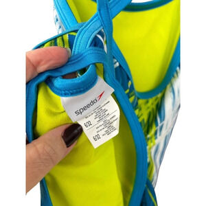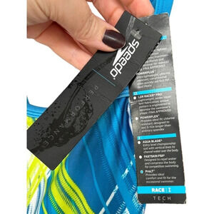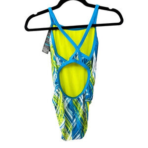 NWT Speedo Women's Laser Neon/Blue Tech Race One Piece Swimsuit Size 6/32
