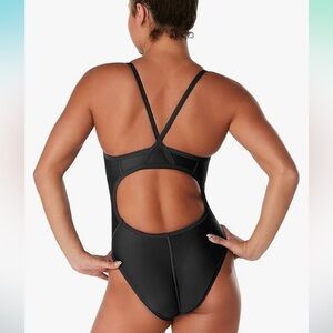 NWT Speedo Women's Swimsuit One Piece Prolt Flyback Solid Adult Team black 30