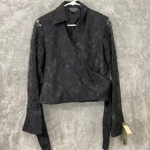 NWT Spencer Jeremy Wrap Blouse Size 4 Sleeves WhimsyGoth, Grunge Textured crop