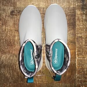 New with tags. Spenco Womens Paddock Chelsea boot in color grey camo. Womens size 6B. 5.25" shaft. Inner Zipper closure.