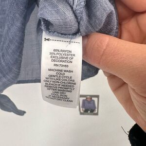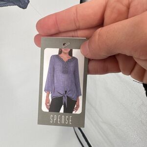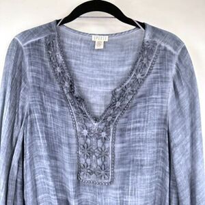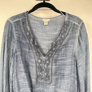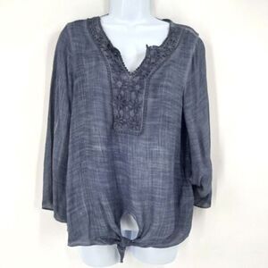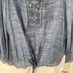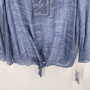 NWT Spense Women's Tie Front Embroidered Bell Sleeve Boho Top Blue Size Small