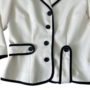 Brad new with tags! Gorgeous winter white and black blazer. Beautiful details, Chic, vintage style. Color is off white, black contrast buttons detailing, button up front