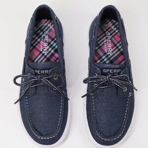 NWT Sperry Kids Bahama Boat Shoe Slip On Loafer Metallic Glitter Navy Shimmer