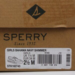 NWT Sperry Kids Bahama Boat Shoe Slip On Loafer Metallic Glitter in Navy Shimmer. Size US 2.5, EU 34.