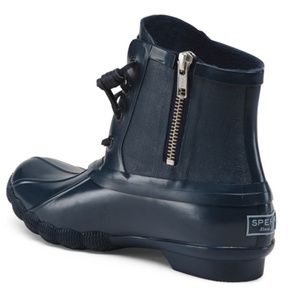 NEW Sperry Top-Sider Syren Gulf Weather Resistant Saltwater Duck Boots. Classic rain boot that is stylish and functional. Navy Blue. Side zip closure and lace up.
