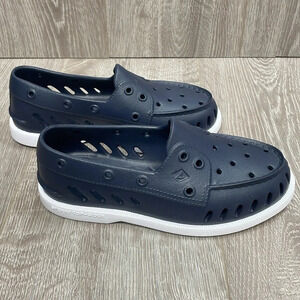 NWT Sperry Top Sider Authentic Original Float Boat Shoe Navy in size 6M. Excellent new condition. Super lightweight, drainage gills on the waterline, breathable portholes topside, molded for wet/dry traction. Please see photos for details. Item may show difference in color based upon photography and perception. Photos are part of the description, as everyone’s level of condition may vary. From smoke free and pet free home. All packages are shipped the same or next business day.