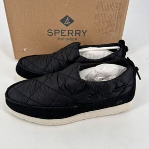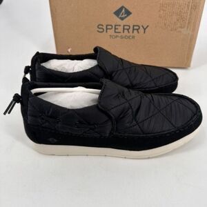 NWT Sperry Moc-Sider Slip-On Moccasin Shoes Sneakers 8.5M Womens Black Nylon $70