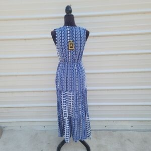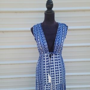 NWT Spiaggia Dolce Blue White Swim Beach Coverup Dress tassel boho Maxi sz XS