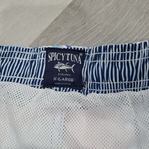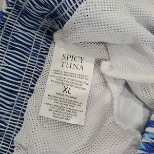 NWT Spicy Tuna 5.5 Swim Trunks Mens XL Blue Tropical Lake Beach Pool Shorts,front shorts, mesh lined, drawstring waist