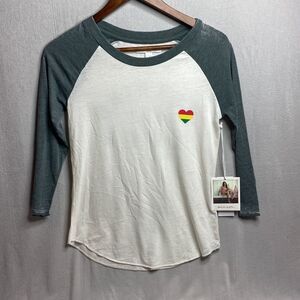 NWT Spiritual Gangster 3/4 sleeve Graphic Tee White and Gray SIze XS
