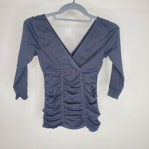 NWT Spiritual Gangster Ruched Detail V Neck Half Sleeve Top Dark Gray XS/S