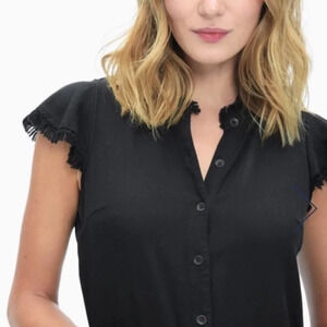 NWT Splendid Black Belted Frayed Short Sleeve Button Down Jumpsuit Size XS