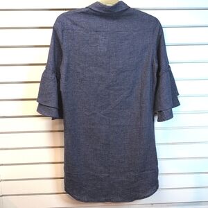 NWT Splendid Blue Chambray Ruffle Sleeve Shirtdress Size XS. Brand new with tags. Collared. Button down. Shirt dress. Short length. Layered flared sleeves. Style# RD12230 55% linen, 45% polyester.