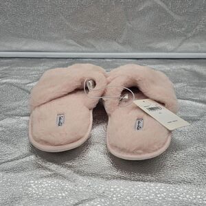 NWT Splendid Faux Fur Fuzzy Fluffy Pink Criss Cross Open Toe Slippers Medium