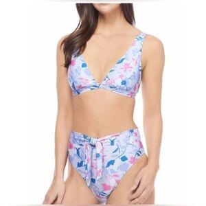 NWT Splendid Floral Print High Waist Bikini Set V Neck Two Piece Swimsuit
