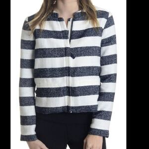 NWT S Splendid Monterey Boxy Woven Jacket Navy White Striped Zip Front SO554