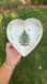Holiday cheer! NWT Heart-shaped bowl featuring a Christmas tree motif on a white background. 7”. Dishwasher and freezer safe.