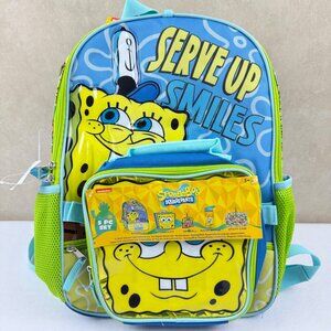 NWT Sponge Bob Kids 5 Pc. Set Backpack 17'' Utility Case Lunch Box Water Bottle