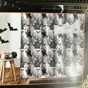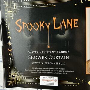 NWT Spooky Lane Water Resistant Fabric Shower Curtain Halloween Scary 72”x72”
