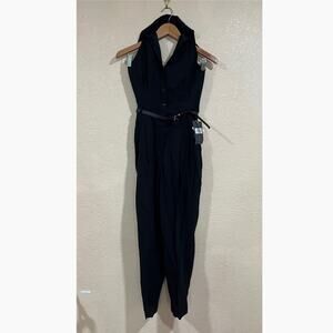 This is a SAMPLE so no tags on the jumpsuit. Brand is shown on the belt and on attached price tags.