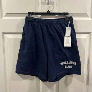 NWT Sporty & Rich Wellness Club Cotton Sweat Shorts Navy Blue Logo Gym Medium