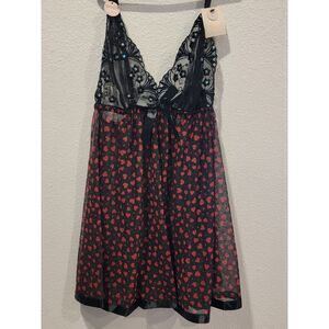 NWT Spree Intimates Black w/ Red Hearts Lingerie Set, M - Style #190 DOTHEART