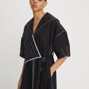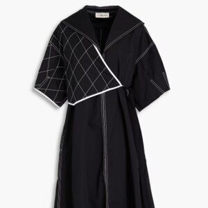 NWT Spring 2022 Tory Burch Diamond Topstitch Sailor Dress in Black Size 10 $798
