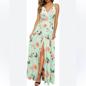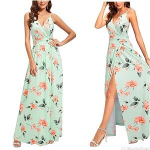 NWT Spring Sleeveless Hawaiian Split Long Maxi Summer Wedding Guest Floral Dress