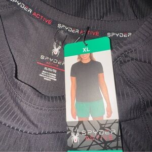 NWT Spyder Active Size XL Black Ribbed Short Sleeve Active Tee Shirt U15