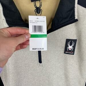 NWT Spyder Cream Quarter-Zip Pullover Men's Sweater Knit Zip Pockets Size Large