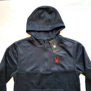 NWT Spyder Hoodie Sweatshirt Pullover Mens Medium M Half-Zip Black Fleece Lined
