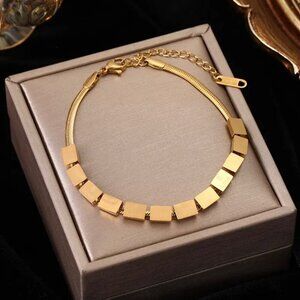 NWT Square Charms Herringbone Bracelet 6" 18K Gold Platted Minimalist