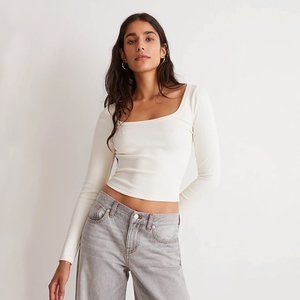 🏷️ NWT: Square-Neck Long-Sleeve Crop Tee in Sleekhold fabric - Size Large