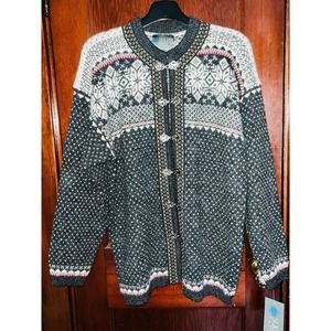 NWT Squaw Valley Sweater Cardigan Grey White Snowflake Nordic Wool SMALL S